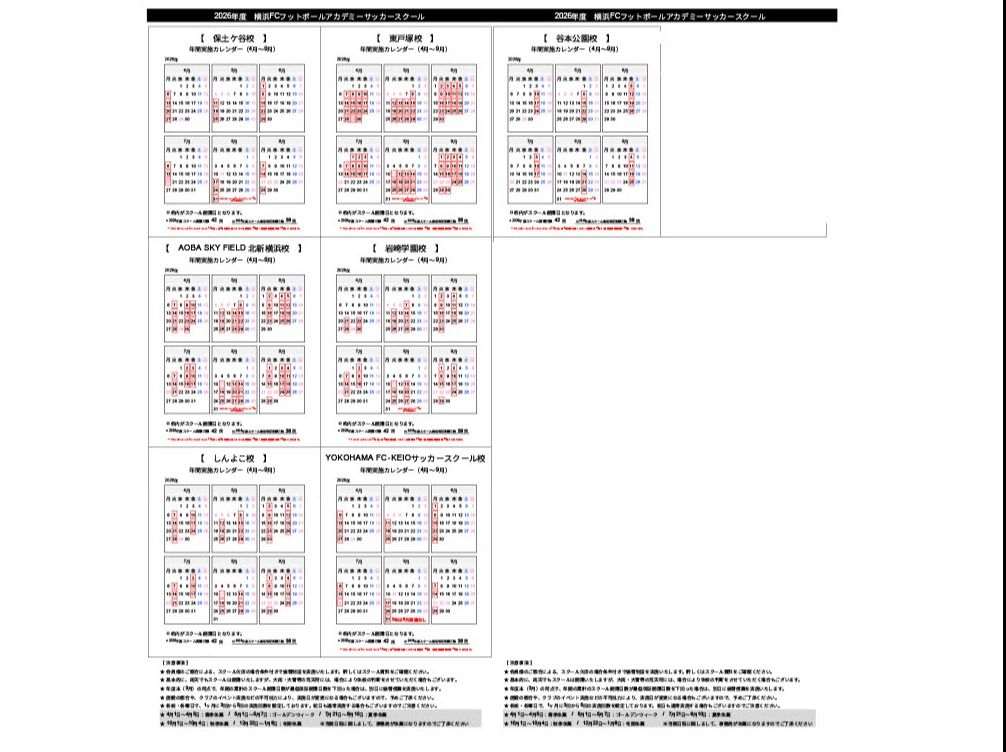 日頃より横浜FCフットボールアカデミーサッカースクールの活動にご理解ご協力を賜りまして、誠にありがとうございます。